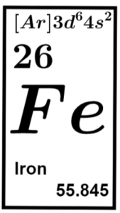 iron’s chemical name is ferrum, from the Latin word ferrium. This is how iron got Fe as its symbol. The format of nonmetal elements formula with iron is Fe X, where X is a nonmetal element or compound. The number of protons in iron’s nucleus is 26, which makes its atomic number also 26.